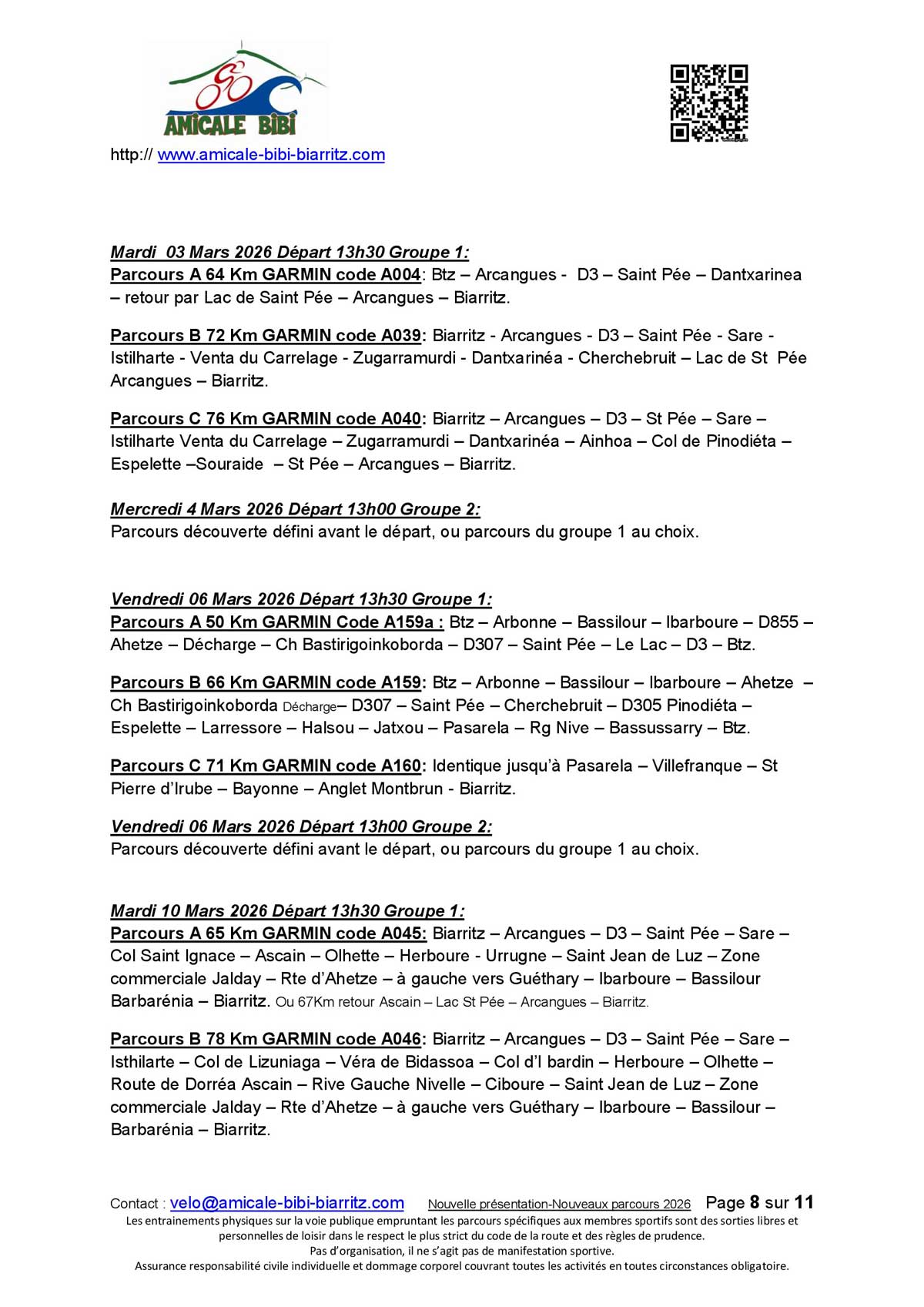 | AMICALE BIBI BIARRITZ CYCLOTOURISME - CYCLOSPORT - MARCHE |